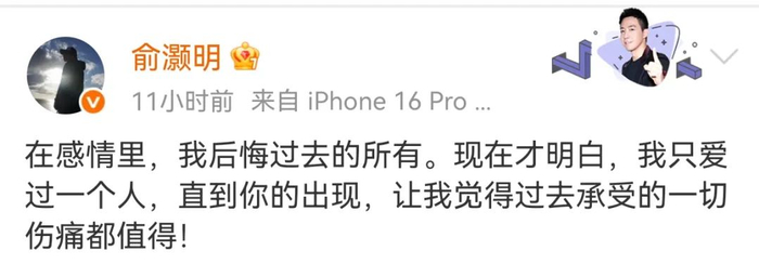 而在5月2日的音乐节现场,面对观众“脱掉”的起哄,俞灏明则甜蜜回应:“你们难道不知道吗?现在的我,脱衣服只能给一个人看。”暗戳戳地秀了一把恩爱,事后他还忍不住“补刀”道:“来晚啦!!”言语间难掩得意与喜悦。